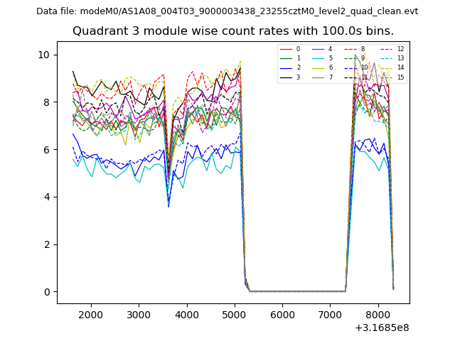 Module-wise count rates for Quadrant A