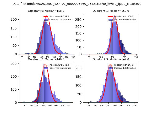 Red curve is a Poisson curve with rate = median count rate of data. |