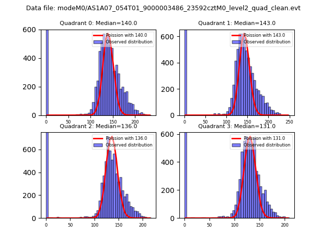 Red curve is a Poisson curve with rate = median count rate of data. |