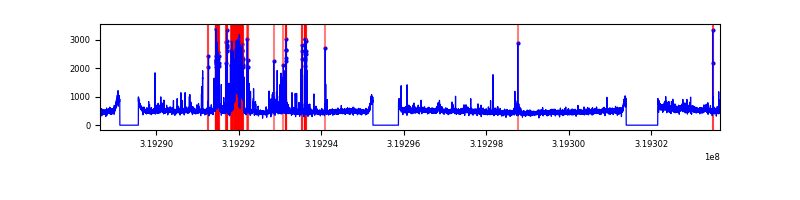 Red curve is a Poisson curve with rate = median count rate of data. |