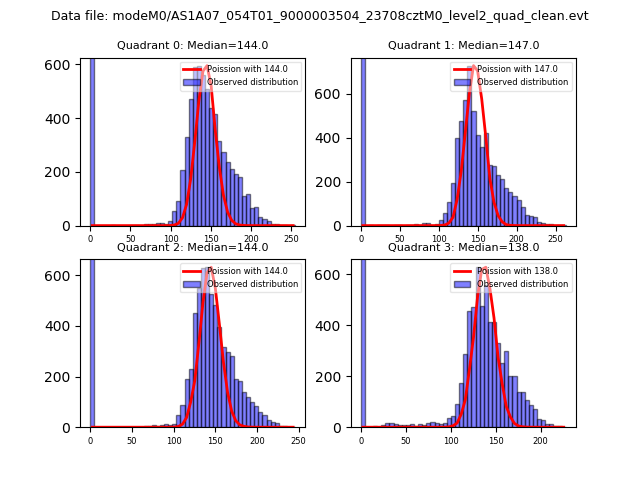 Red curve is a Poisson curve with rate = median count rate of data. |