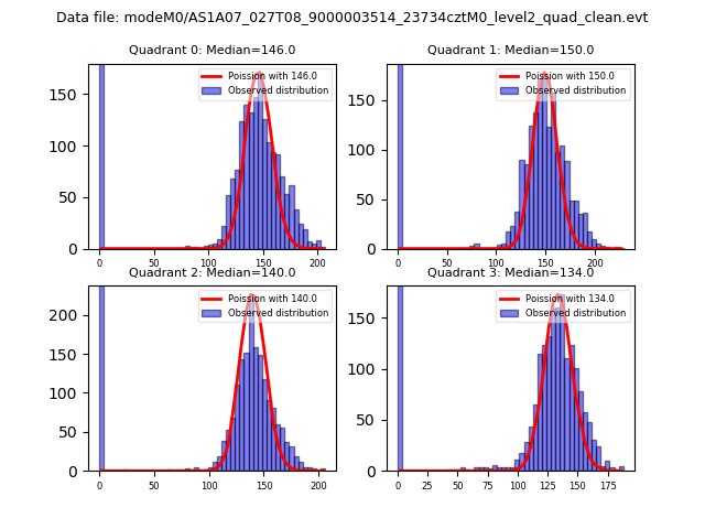 Red curve is a Poisson curve with rate = median count rate of data. |