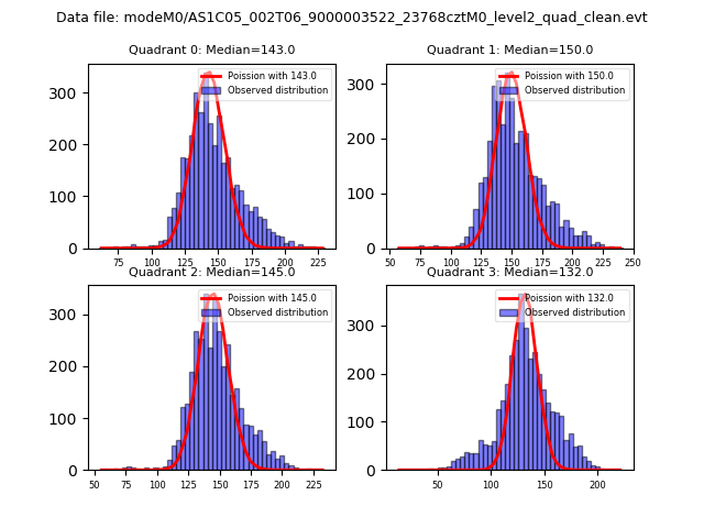 Red curve is a Poisson curve with rate = median count rate of data. |