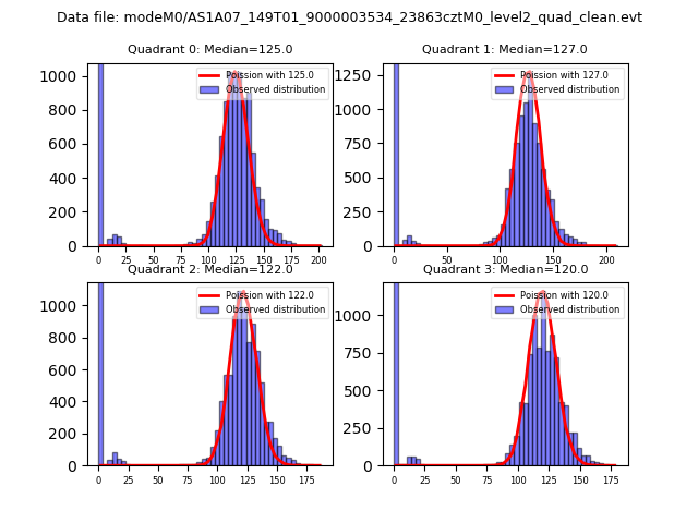 Red curve is a Poisson curve with rate = median count rate of data. |