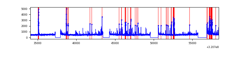 Red curve is a Poisson curve with rate = median count rate of data. |