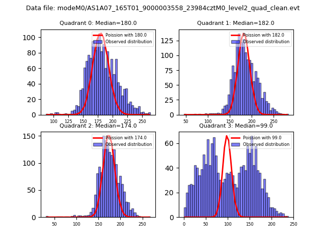Red curve is a Poisson curve with rate = median count rate of data. |