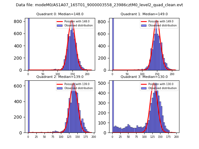 Red curve is a Poisson curve with rate = median count rate of data. |