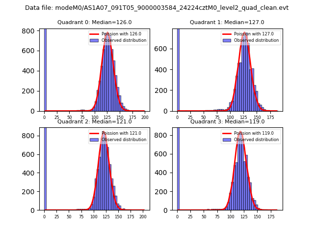 Red curve is a Poisson curve with rate = median count rate of data. |