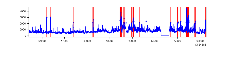Red curve is a Poisson curve with rate = median count rate of data. |