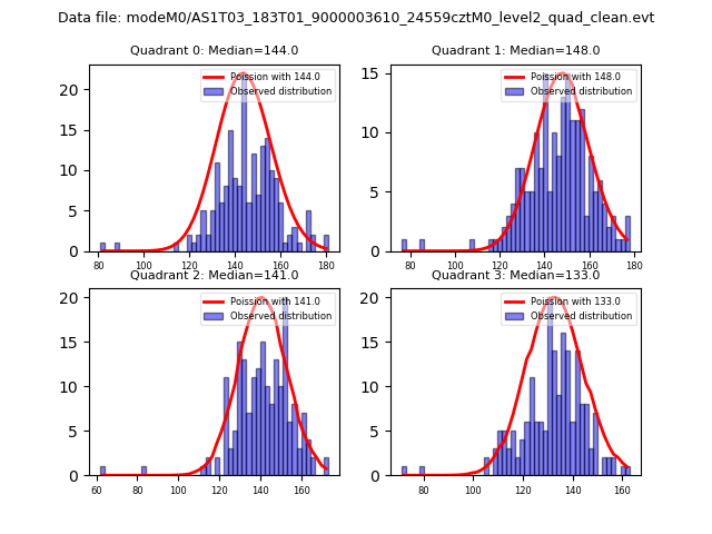 Red curve is a Poisson curve with rate = median count rate of data. |