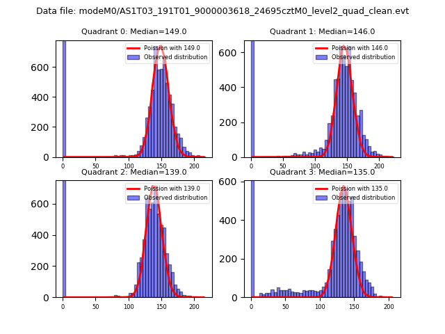 Red curve is a Poisson curve with rate = median count rate of data. |