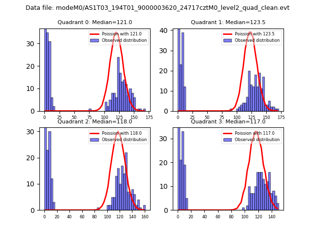 Red curve is a Poisson curve with rate = median count rate of data. |