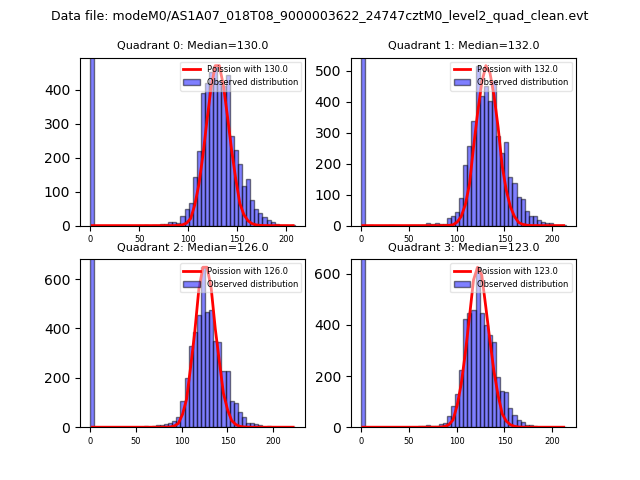 Red curve is a Poisson curve with rate = median count rate of data. |
