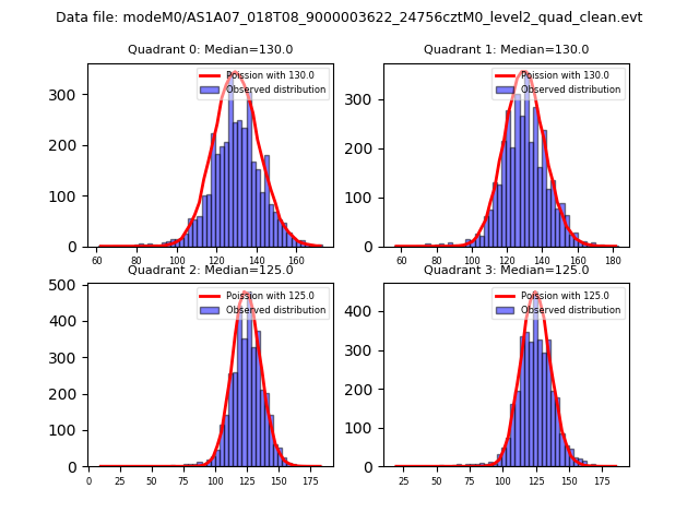 Red curve is a Poisson curve with rate = median count rate of data. |
