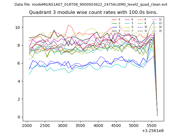 Module-wise count rates for Quadrant A