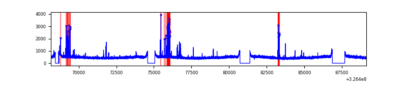 Red curve is a Poisson curve with rate = median count rate of data. |