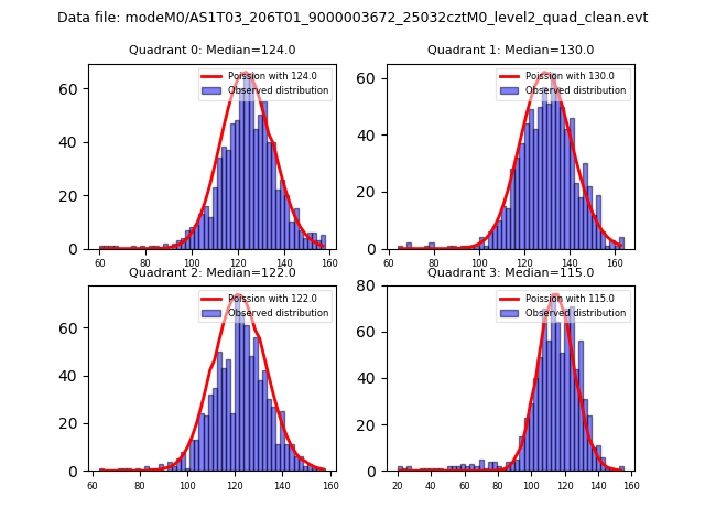 Red curve is a Poisson curve with rate = median count rate of data. |