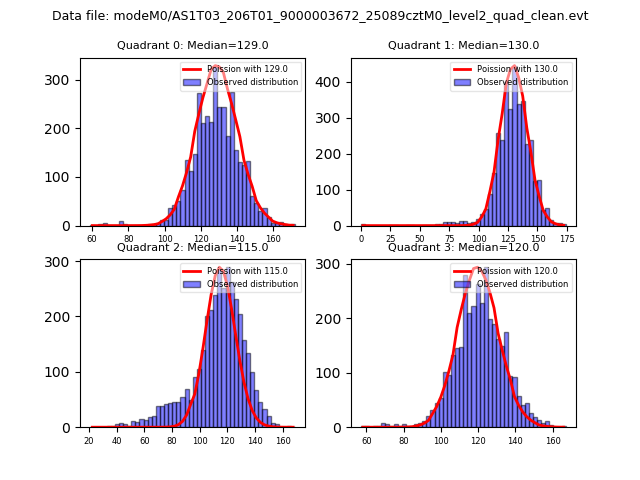 Red curve is a Poisson curve with rate = median count rate of data. |