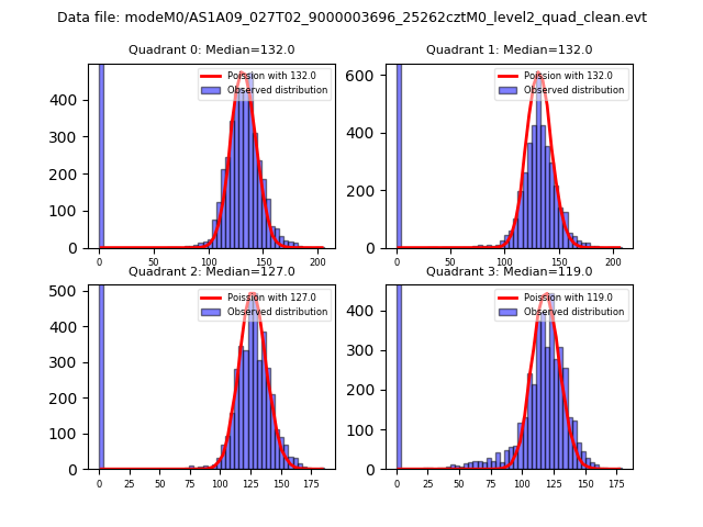 Red curve is a Poisson curve with rate = median count rate of data. |