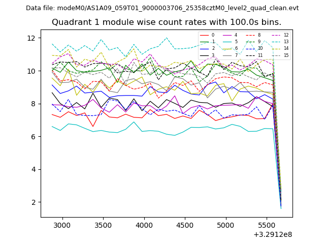 Module-wise count rates for Quadrant A