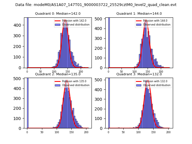 Red curve is a Poisson curve with rate = median count rate of data. |