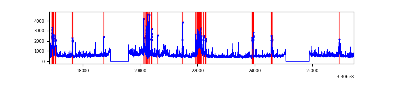 Red curve is a Poisson curve with rate = median count rate of data. |