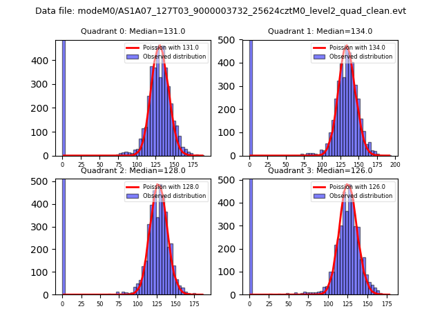 Red curve is a Poisson curve with rate = median count rate of data. |