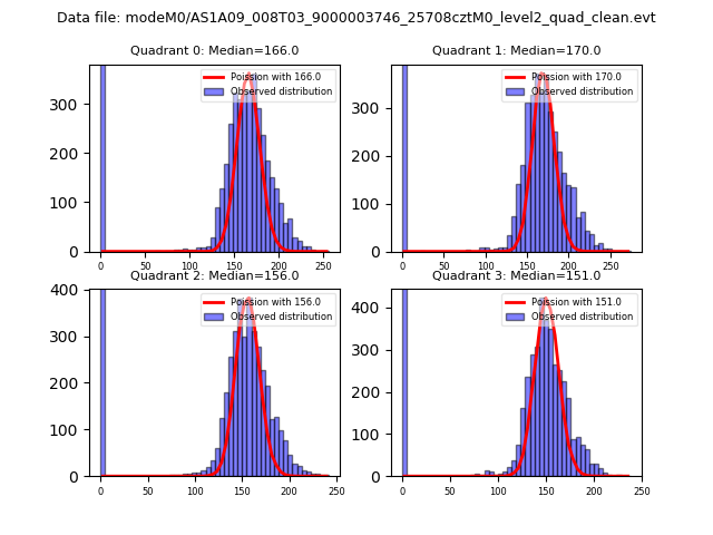 Red curve is a Poisson curve with rate = median count rate of data. |