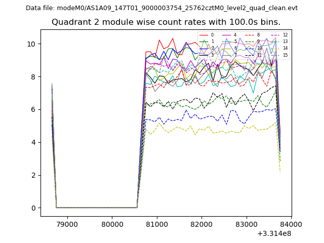 Module-wise count rates for Quadrant A