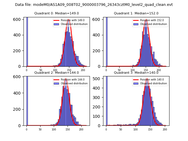 Red curve is a Poisson curve with rate = median count rate of data. |