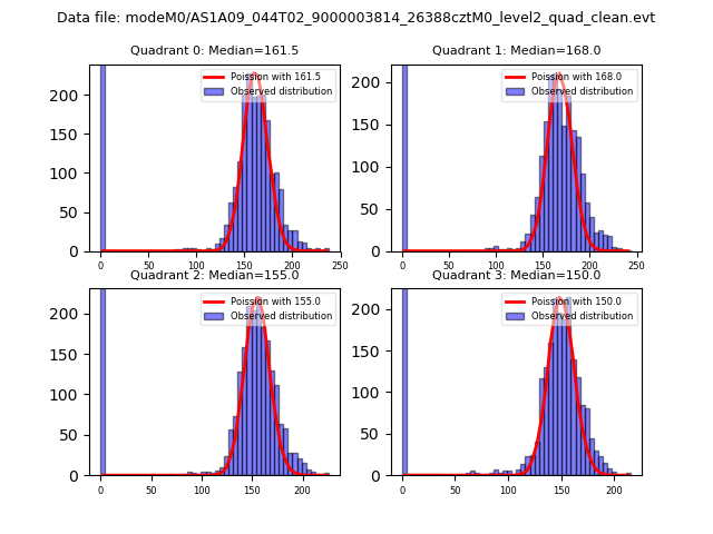 Red curve is a Poisson curve with rate = median count rate of data. |
