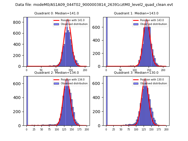 Red curve is a Poisson curve with rate = median count rate of data. |
