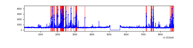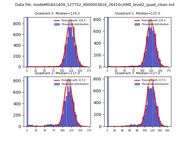 Red curve is a Poisson curve with rate = median count rate of data. |