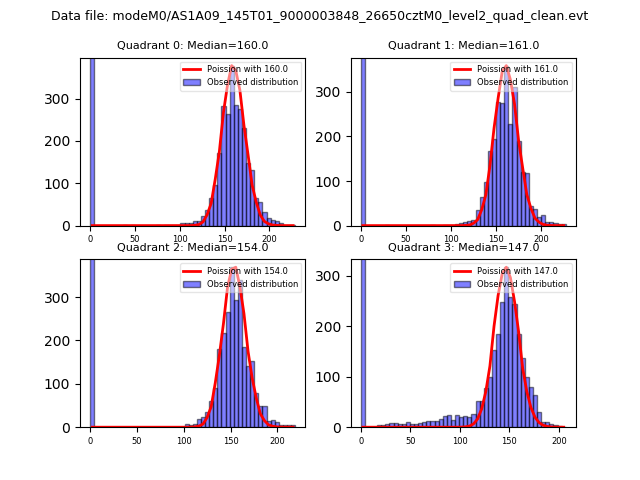 Red curve is a Poisson curve with rate = median count rate of data. |
