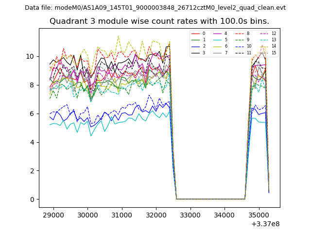 Noise dominated data is calculated using 1-second bins in cleaned event files. If a bin has >2000 counts, and if more than 50% of those come from <1% of pixels, then it is considered to be noise-dominated and hence unusable.