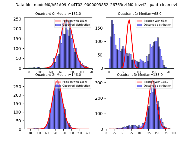 Red curve is a Poisson curve with rate = median count rate of data. |