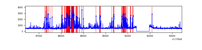 Red curve is a Poisson curve with rate = median count rate of data. |