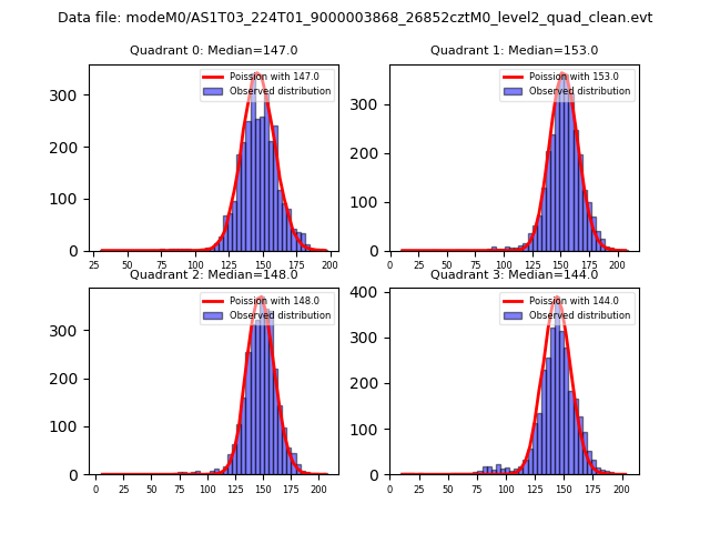 Red curve is a Poisson curve with rate = median count rate of data. |