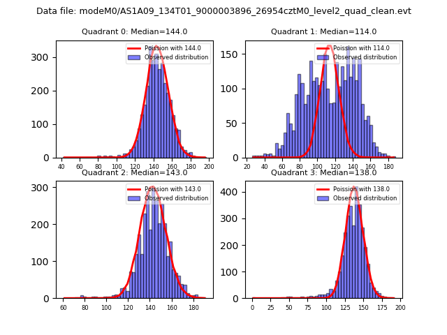 Red curve is a Poisson curve with rate = median count rate of data. |