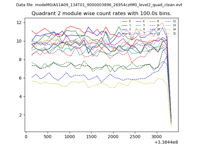 Module-wise count rates for Quadrant A