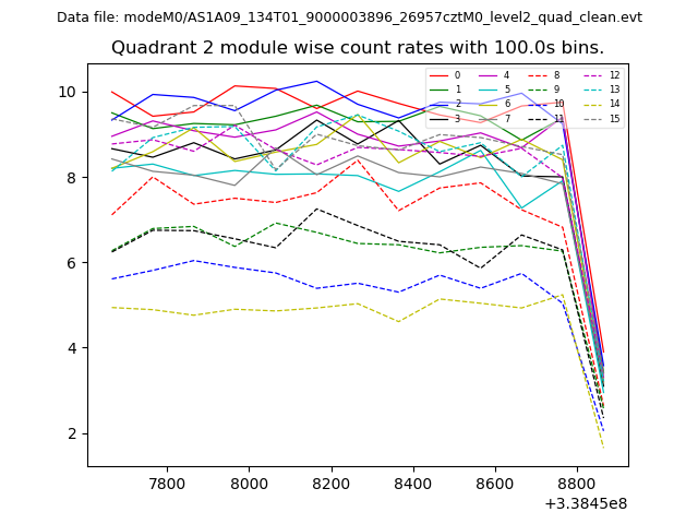 Module-wise count rates for Quadrant A