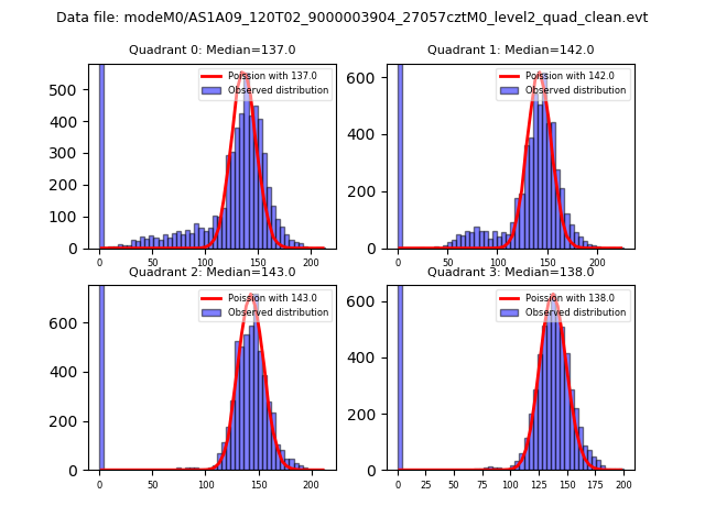 Red curve is a Poisson curve with rate = median count rate of data. |