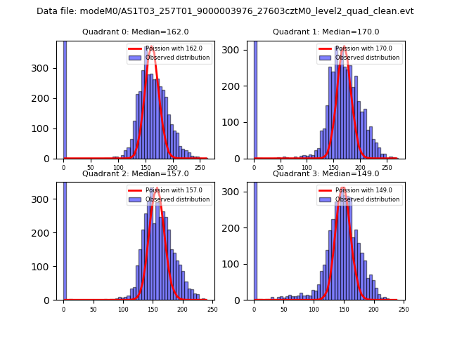 Red curve is a Poisson curve with rate = median count rate of data. |