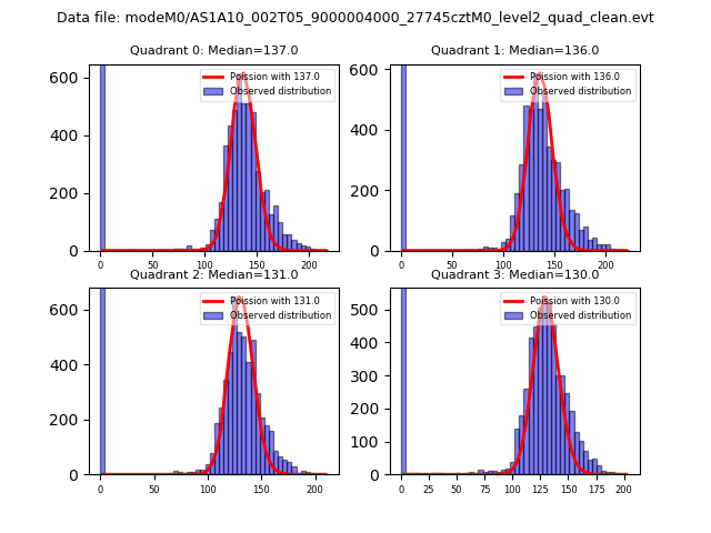 Red curve is a Poisson curve with rate = median count rate of data. |
