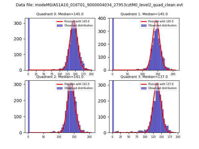 Red curve is a Poisson curve with rate = median count rate of data. |