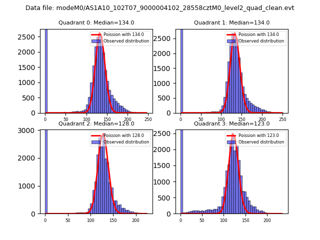 Red curve is a Poisson curve with rate = median count rate of data. |