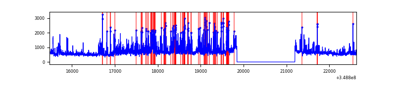 Red curve is a Poisson curve with rate = median count rate of data. |