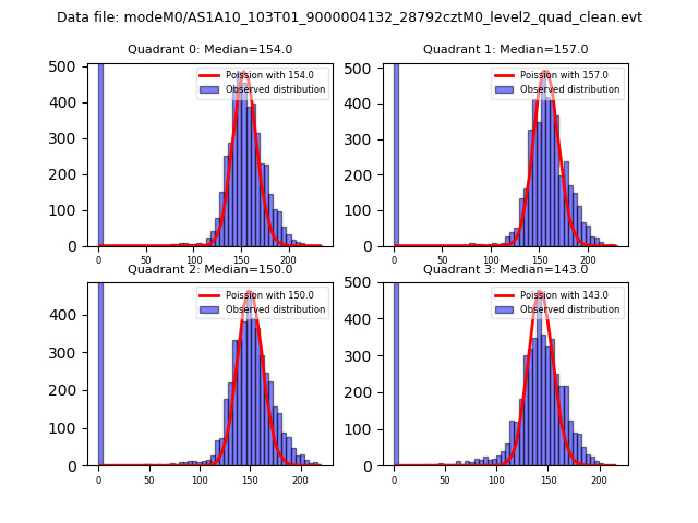 Red curve is a Poisson curve with rate = median count rate of data. |