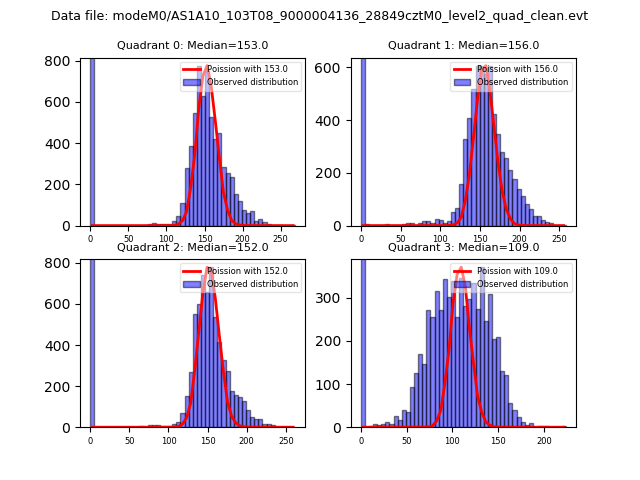 Red curve is a Poisson curve with rate = median count rate of data. |