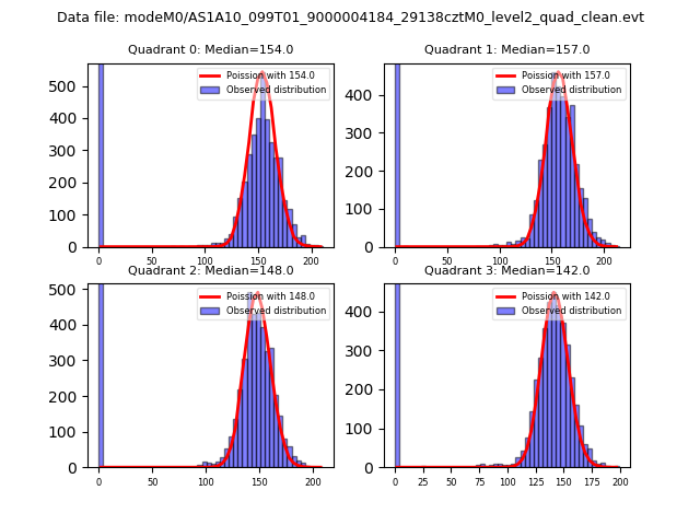 Red curve is a Poisson curve with rate = median count rate of data. |